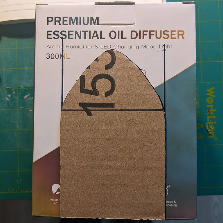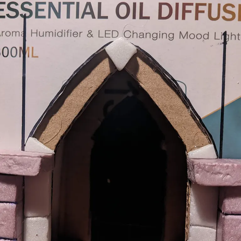 I started by cutting the first arch shape out of another piece of card and tracing it on the box itself. Then on the main box I sliced off the bottom before cutting arches out of the first two opposing sides.