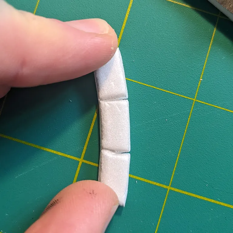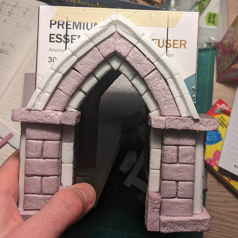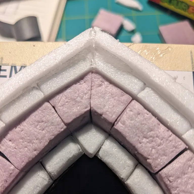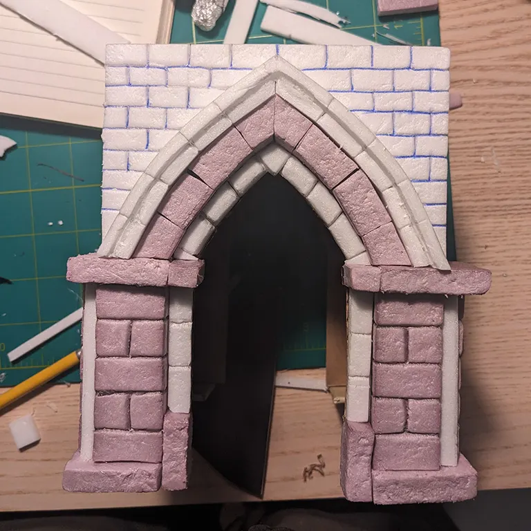 I decided to make the next arch slightly thicker to add to the ‘layering’, switching back to the pink foam. I tried to keep these bricks symmetrical but there’s only so much one can do with just a knife - a hot wire-cutter would be a lot more consistent.