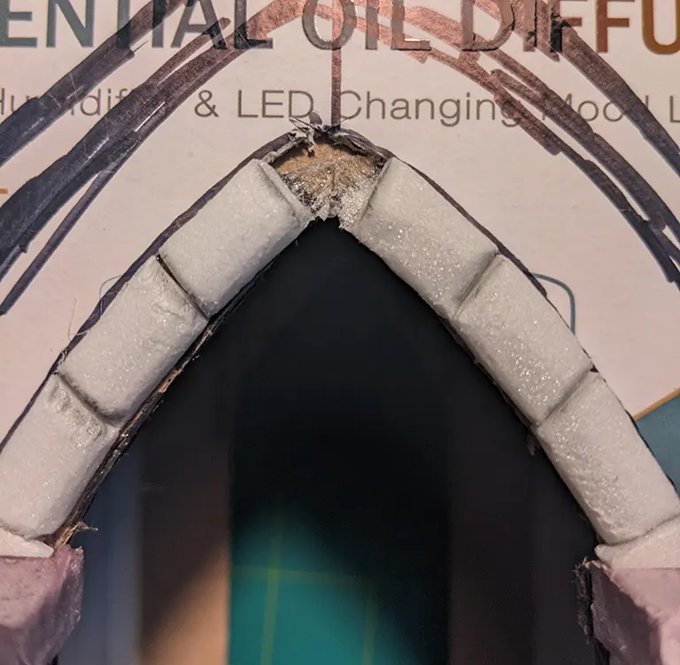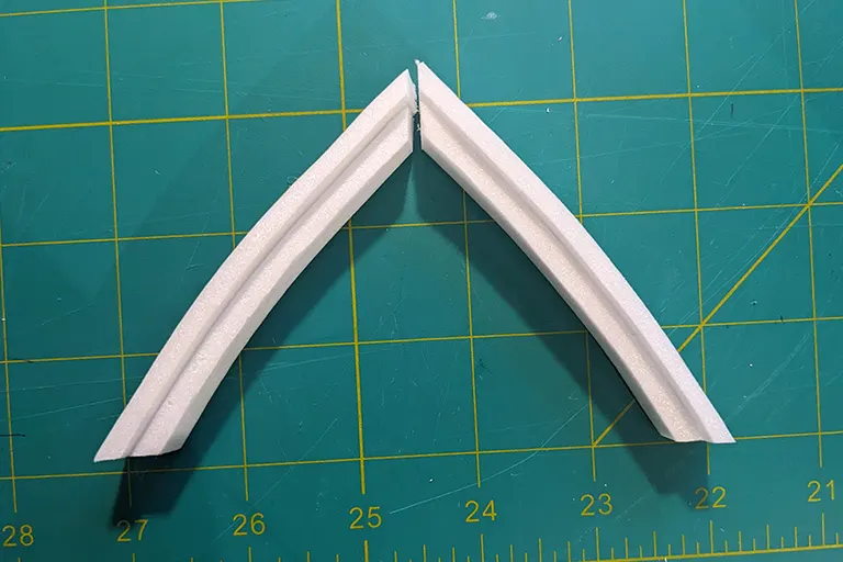 This step was pretty tricky to do as angles needed to be correctly cut to ensure a proper fit at either end. This did result in me applying too much glue while holding ends together and slightly melting the foam in the proecss.