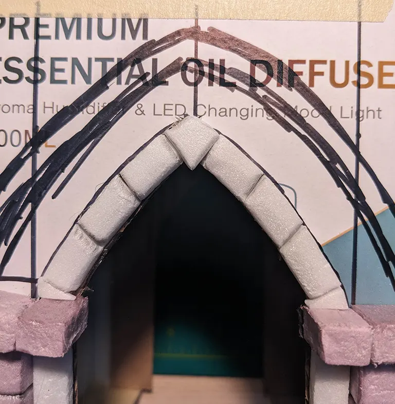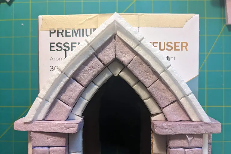 - Slightly cutting all the way through one side of the scored bricks meant I could bend a straight piece, fitting the curved arch better.