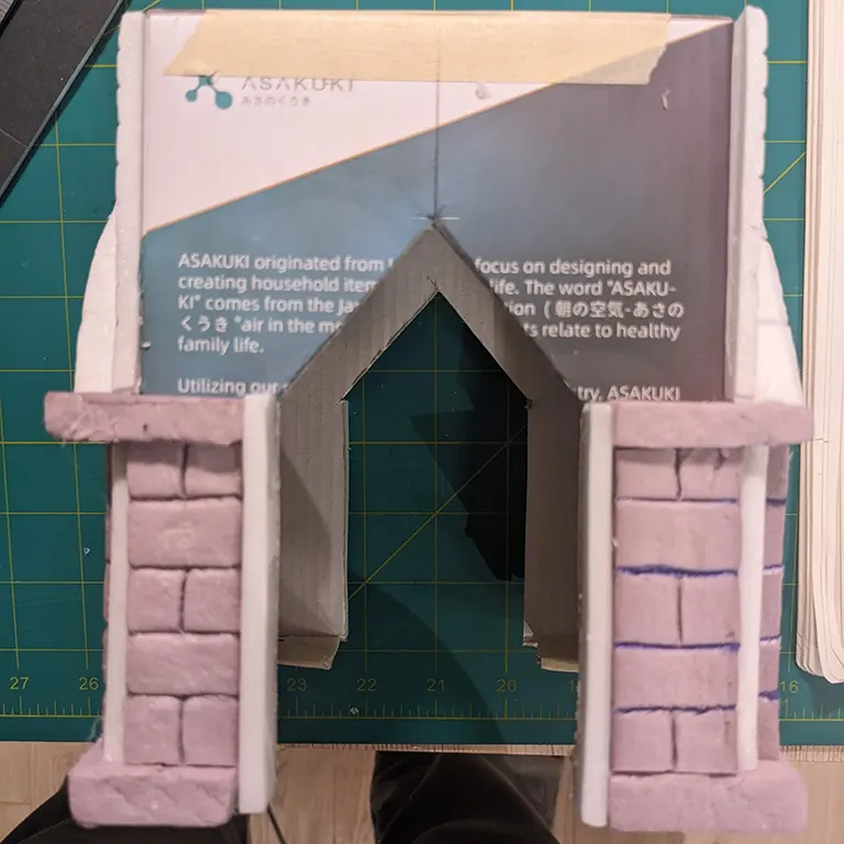 Then it was a simple job of cutting a piece to cover the remaining card and marking up the rest of the bricks to make it look cohesive with the existing sides. I didn’t end up implementing the diamond shapes that I drew in the initial design because I had already had some ideas about the roof - I didn’t think there would be enough space for them to look good in the end.